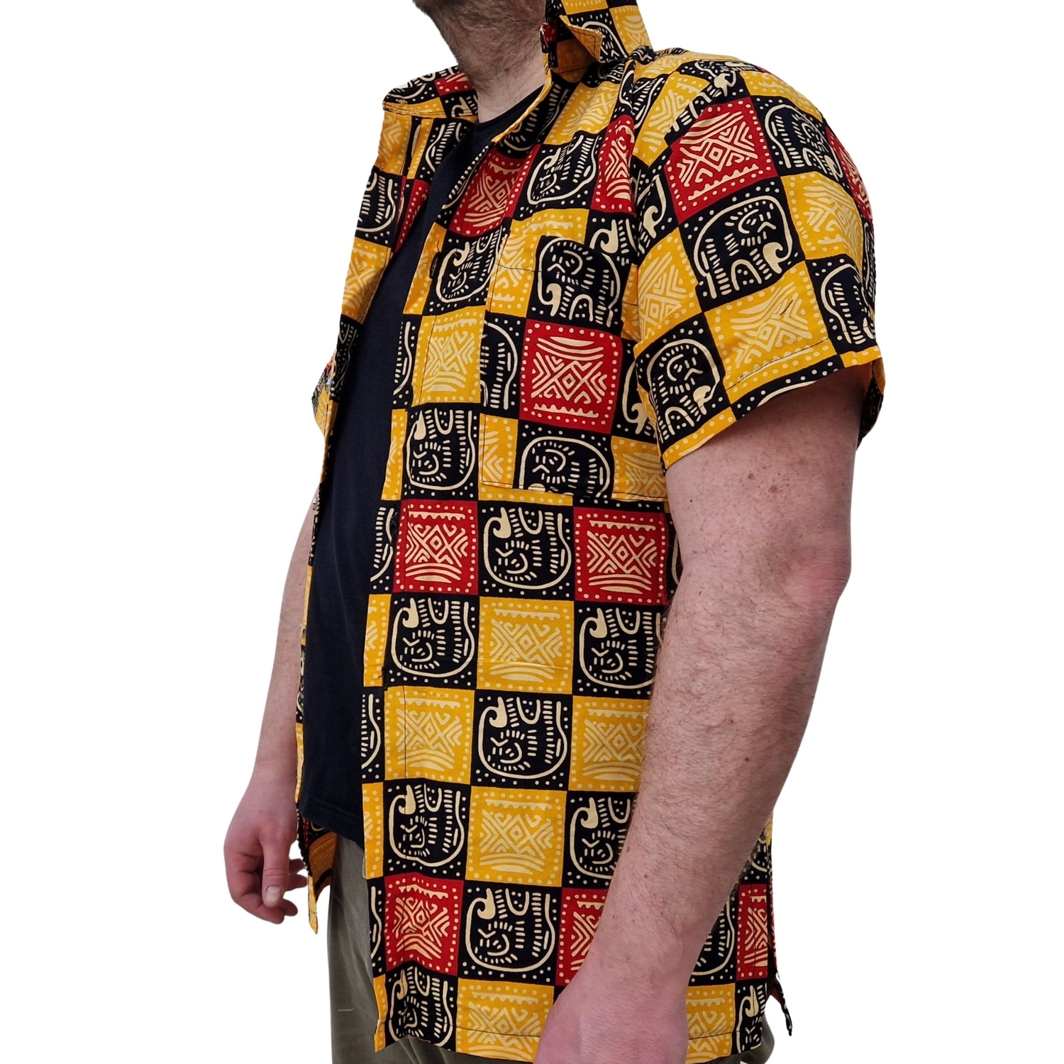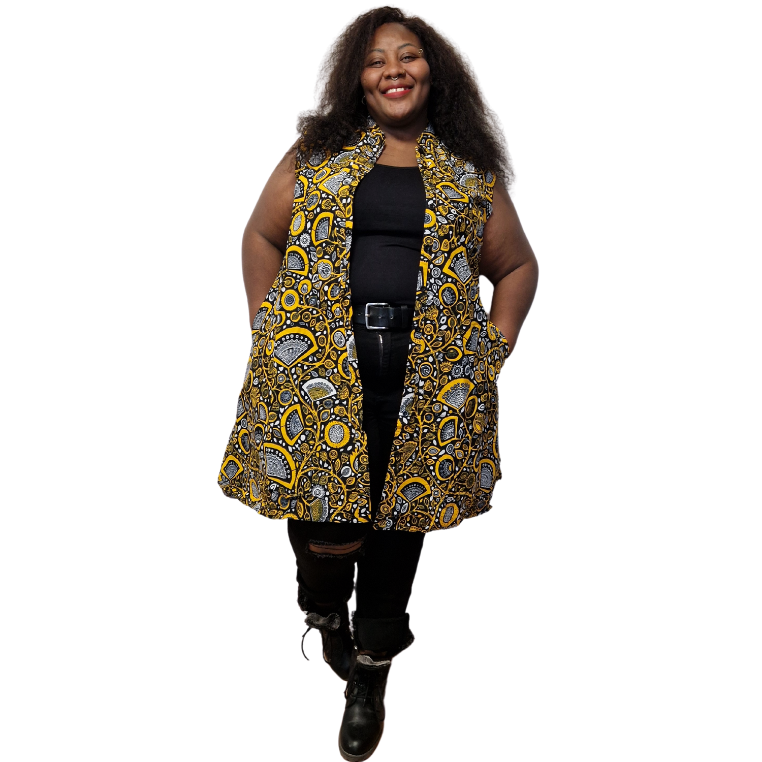 Find your unique bomber jacket made from patchwork of African print fabric.
